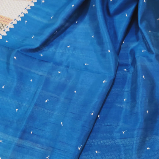 Bring elegance and charm to any celebration with the blue Tussar silk saree featuring a silver embroidery border. The deep blue shade enhances your festive look, while the silver embroidery adds subtle glamour. Lightweight and smooth, the saree drapes effortlessly for comfort during long events. Perfect for festive gatherings, weddings, and evening parties, this saree combines style, tradition, and ease.