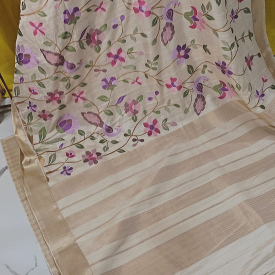 Beautiful White Tussar Silk Saree with Embroidery Design for Festive Wear