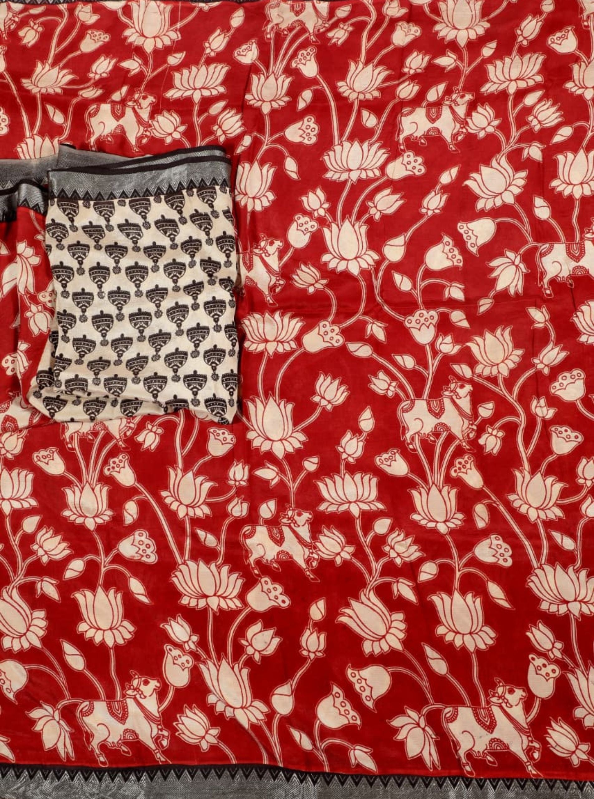 - Border: Traditional Kalamkari patterned border for artistic elegance