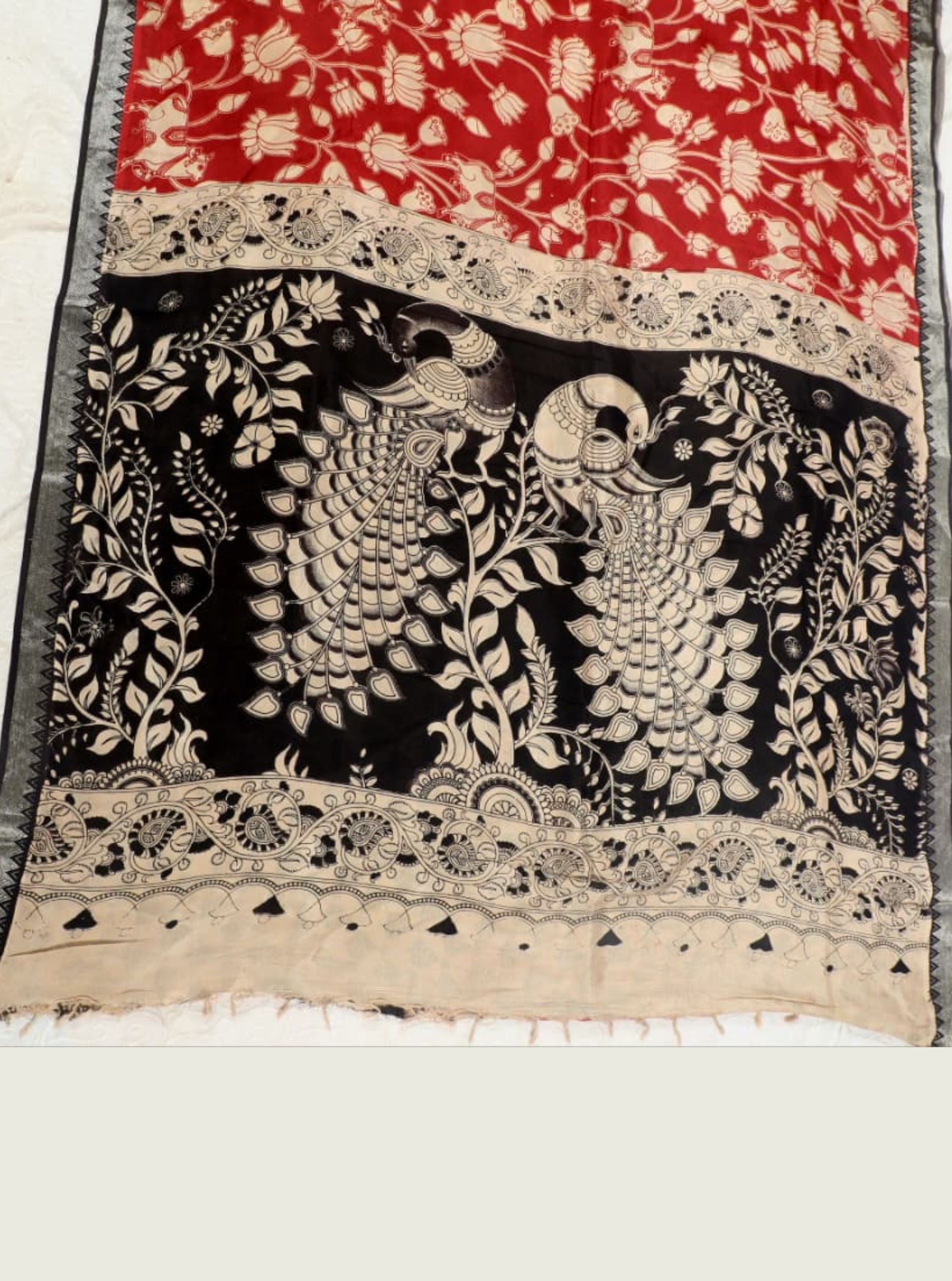- Art Style: Authentic Kalamkari — peacock motifs + floral design