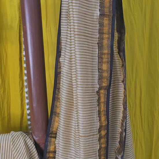 Charming Ivory Maheshwari Silk Saree with Hand Block Print for Festive & Party Wear