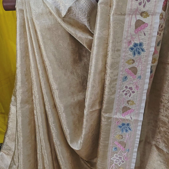Elegant Gold Tissue Silk Saree with Embroidery Design for Festive and Party Wear