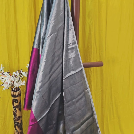 Choosing a saree that brings out both grace and comfort during festive occasions can be difficult. This pink and silver dual-shade tissue cotton saree from Swarajya Weaves perfectly balances sophistication with simplicity. The harmonious blend of pink and silver tones creates a soft radiance, giving you a glow that complements every celebration. Crafted from fine tissue cotton, it feels light on the skin and drapes effortlessly, keeping you at ease through long hours of festivity. Whether it is a wedding event, puja, or family gathering, this saree ensures you stand out with understated elegance and charm.