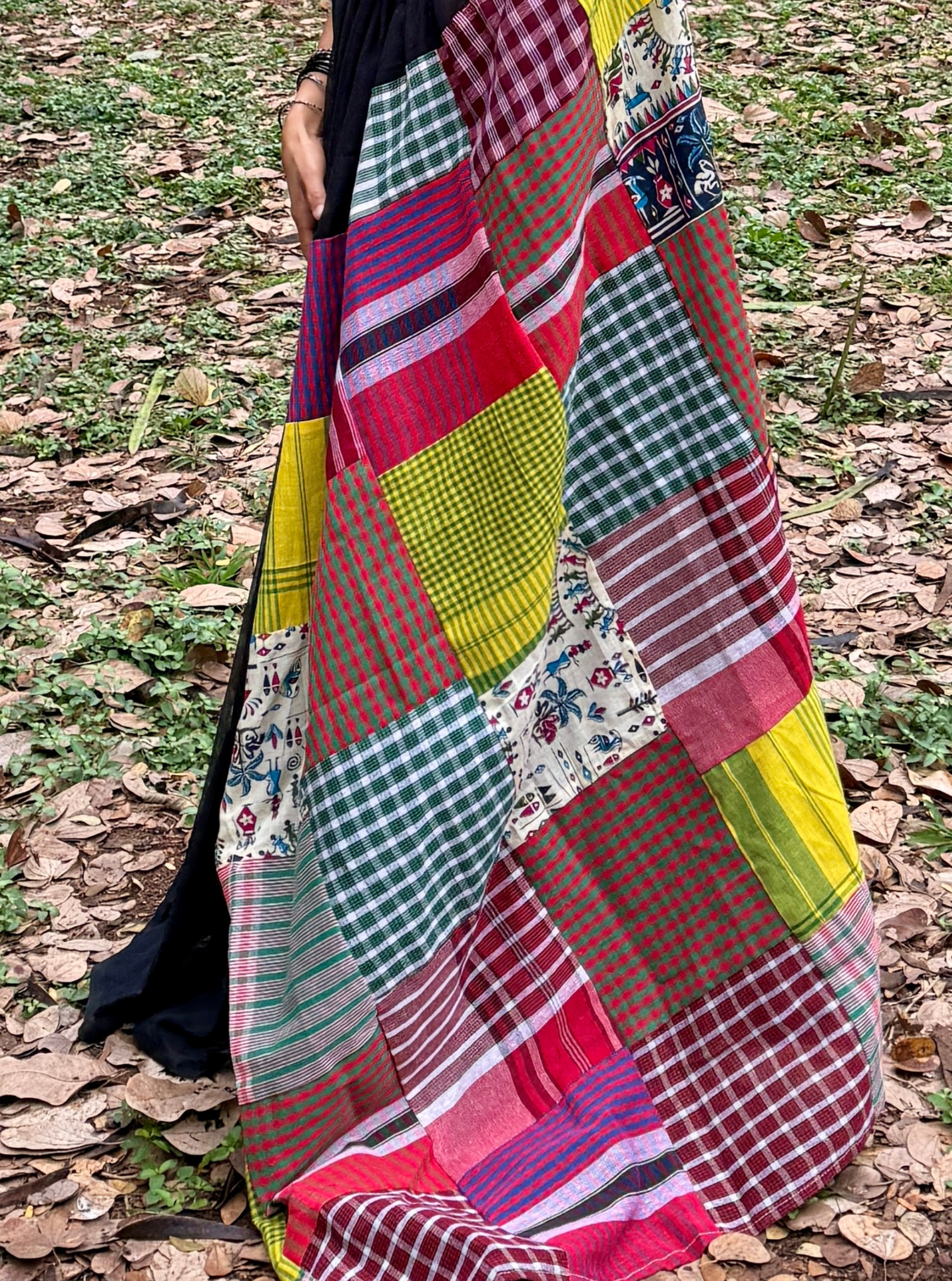 Midnight Patchwork Multi Color Mul Cotton Saree