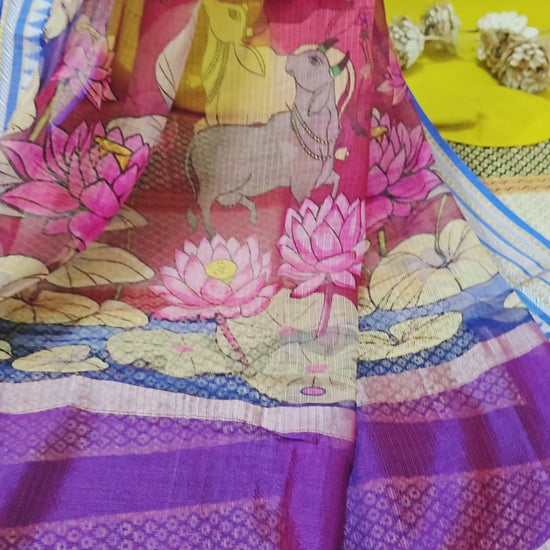Stylish Red Kota Silk Saree with Beautiful Digital Print for Festive Occasions